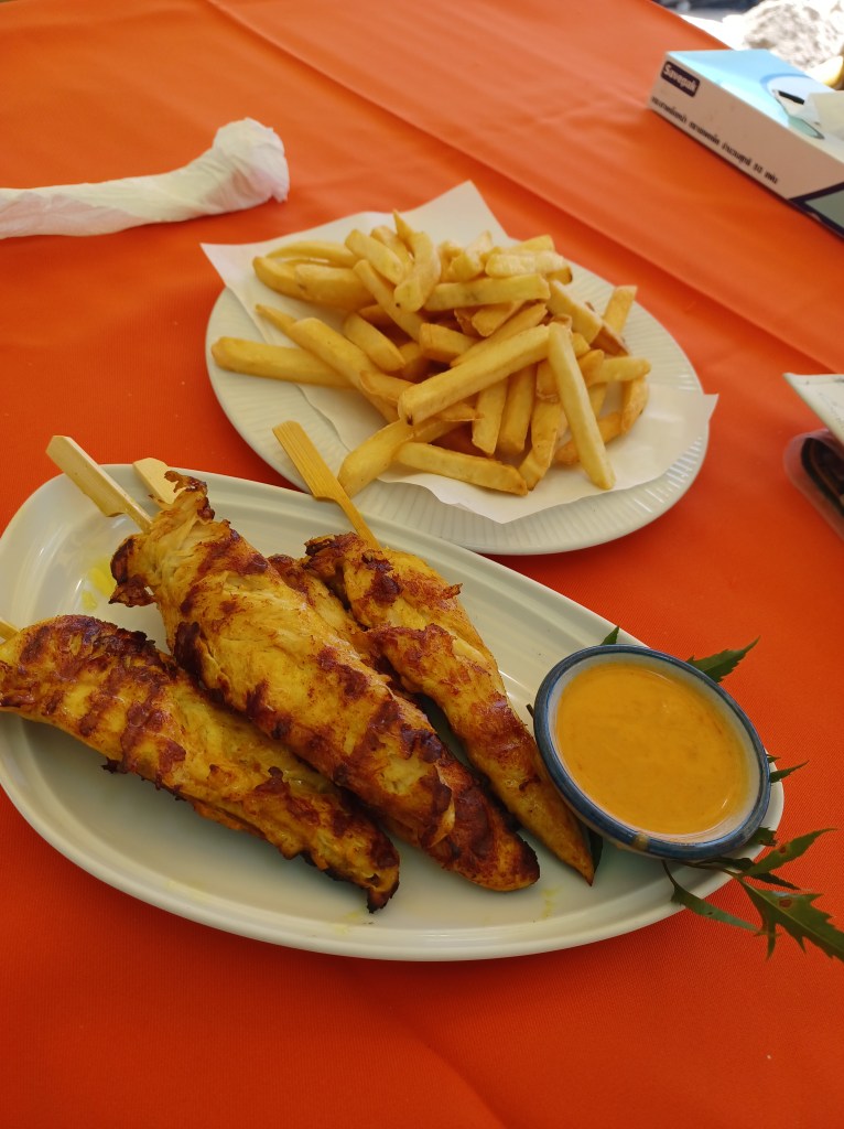 I am correct about the road coming back towards the beach, I pass the Posh Hotel I sometimes go to almost pop in for a coffee, but don’t, this is a mistake as around 2 minutes later the heavens open and we have torrential rain! I had bought my umbrella, which is small and pretty useless against this downpour! I run and shelter under a shop canopy and hope it’ll stop soon, it does. I carry on walking but am a little soggy. I stop to have a drink and decide on a Hot Chocolate with Coconut milk, trying to avoid dairy milk. My drink is delicious 😋 very creamy and yummy, unfortunately for some reason it just doesn’t agree with me and when I get back to my hotel, which luckily isn’t far the whole thing goes right through me! 😬I’m hoping that it’s because it was too rich and not that I’ve now got another upset tummy ☹️
