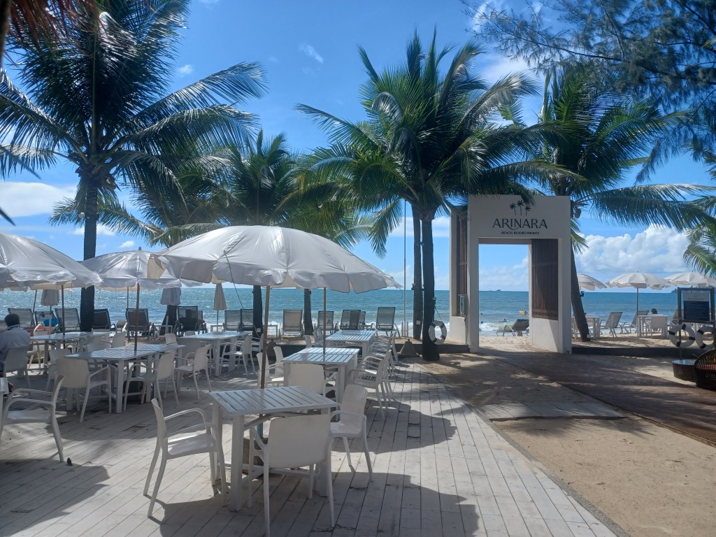 I sit at Arinara beach for a while and have a delicious iced tea.