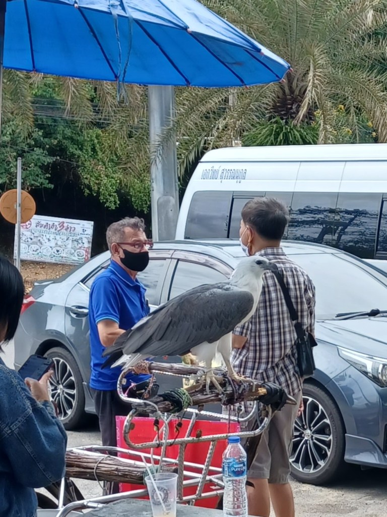 It is a stunning view, made more beautiful by the clouds. We have a good walk around. The only blight is the person there who has a gorgeous, huge Fish Eagle and a Fish Hawk which you can have photos with. I just hate seeing this, those birds should be free to fly.
