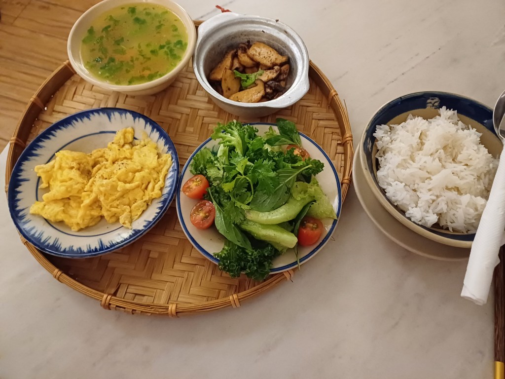 The bed was comfy and I slept pretty well until around 5ish when the noise from the road (it’s a main route into Dalat) and the garage next door woke me up! 😩