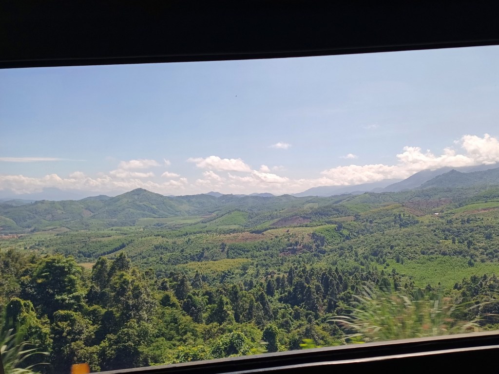 I had booked a smaller Minivan for this trip as it’s only 3.5 hours, although it is supposed to be a luxury one. It arrives half an hour before departure, standard (now I know about these things! 😃) I assume I’m the first to be picked up but as the bus works its way out of Dalat and up into the hills I realise I’m actually the only passenger! 😍 I’m really surprised they didn’t cancel the bus TBH.